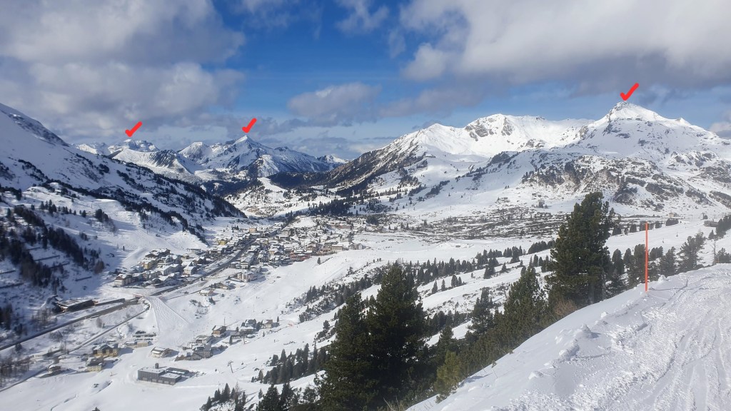 • Obertauern a fost o surpriză foarte plăcută. Este la 1h15min de Kaprun/Bruck într-o trecătoare la cca 1700m oarecum similară cu San Pellegrino din Dolomiți. 100km de pârtii amenajate de o parte și de alta, toate conectate cu instalații optimizate pentru ski-in-ski-out. Ne-a plăcut foarte mult. Venisem după o ninsoare consistentă de vreo 20cm și pârtiile erau încărcate de distracție. Ne gândim foarte serios să ne întoarcem aici când trecem din nou la vacanțe mai legate de o locație. Să nu uitați să vă luați lanțuri la mașină. Poliția stă de veghe și obligă mașinile mari să-și pună lanțurile. Noi cu mașina mică am scăpat fără să pierdem timpul cu ele, dar am auzit în alte zile amici care au fost obligați să le pună și la mașină mică. Obertauern a fost cea mai flexibilă la skipass dintre toate experiențele. Celelalte regiuni te obligă la skipass combinat de minim o zi. Rar vezi skipass de jumătate de zi redus sumar cu vreo 20% și cam atât. Ei bine, Obertauern îi bate pe toți cu skipass-urile pe puncte. Poți lua cu 250 sau 400 puncte pentru ceva lejer de jumătate de zi sau chiar să reîncarci cu exact câte puncte îți trebuie pentru o instalație. Îmi și imaginez cazându-mă undeva acolo lângă o pârtie și ieșind când vreau la schi și cât vreau. Au și două piste de schi fond, una care părea abordabilă la nord de șosea și alta neagră de cupă mondială la sud pentru temerari.