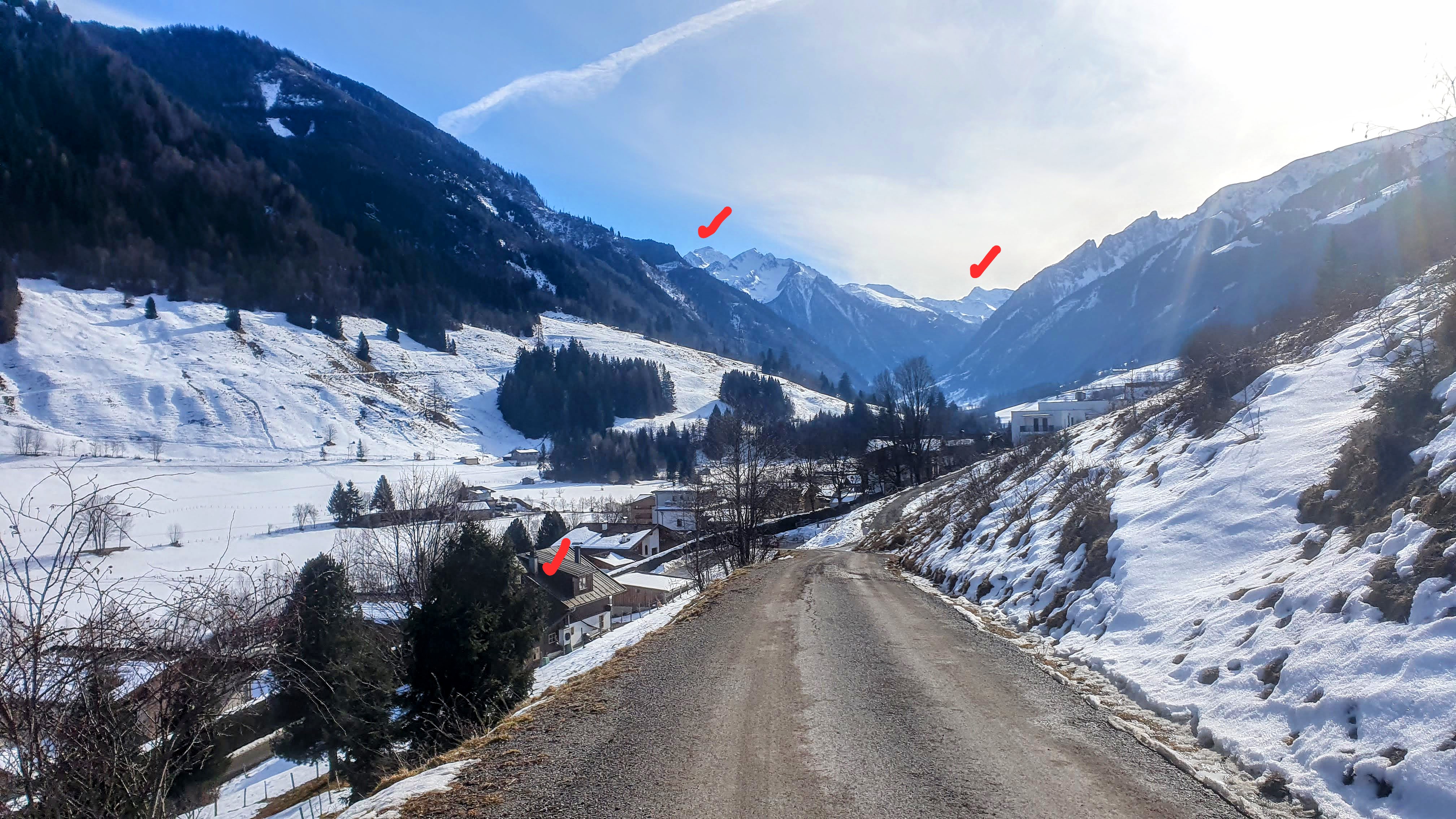 A doua cea mai importantă cheltuială e cazarea. Am ales-o la țară, la 10km de Kaprun, fiindcă oricum aveam să mergem în fiecare zi cu mașina la schi. Apartamentul Monikăi din Vorfusch de lângă Bruck era parterul modernizat sumar al unei căsuțe de țară. Suficient de renovat cât să te simți bine dar destul de rustic să rămână autentic. Am dat jos televizorul din fereastră ca să avem vedere din dormitor spre valea străzii Grossglockner, vestita traversare peste Hohe Tauern, străjuită de niște treimiare. Vârful Grossglockner de cca 3800m e tare prețios la vedere, nu se vede de oriunde. Practic din vale, din Kaprun, Zell am See sau Bruck, este mascat de vârful Kitzsteinhorn de cca 3000m cu ghețarul schiabil cu același nume. Am mai fost în zonă și vara. Probabil ne mai întoarcem.