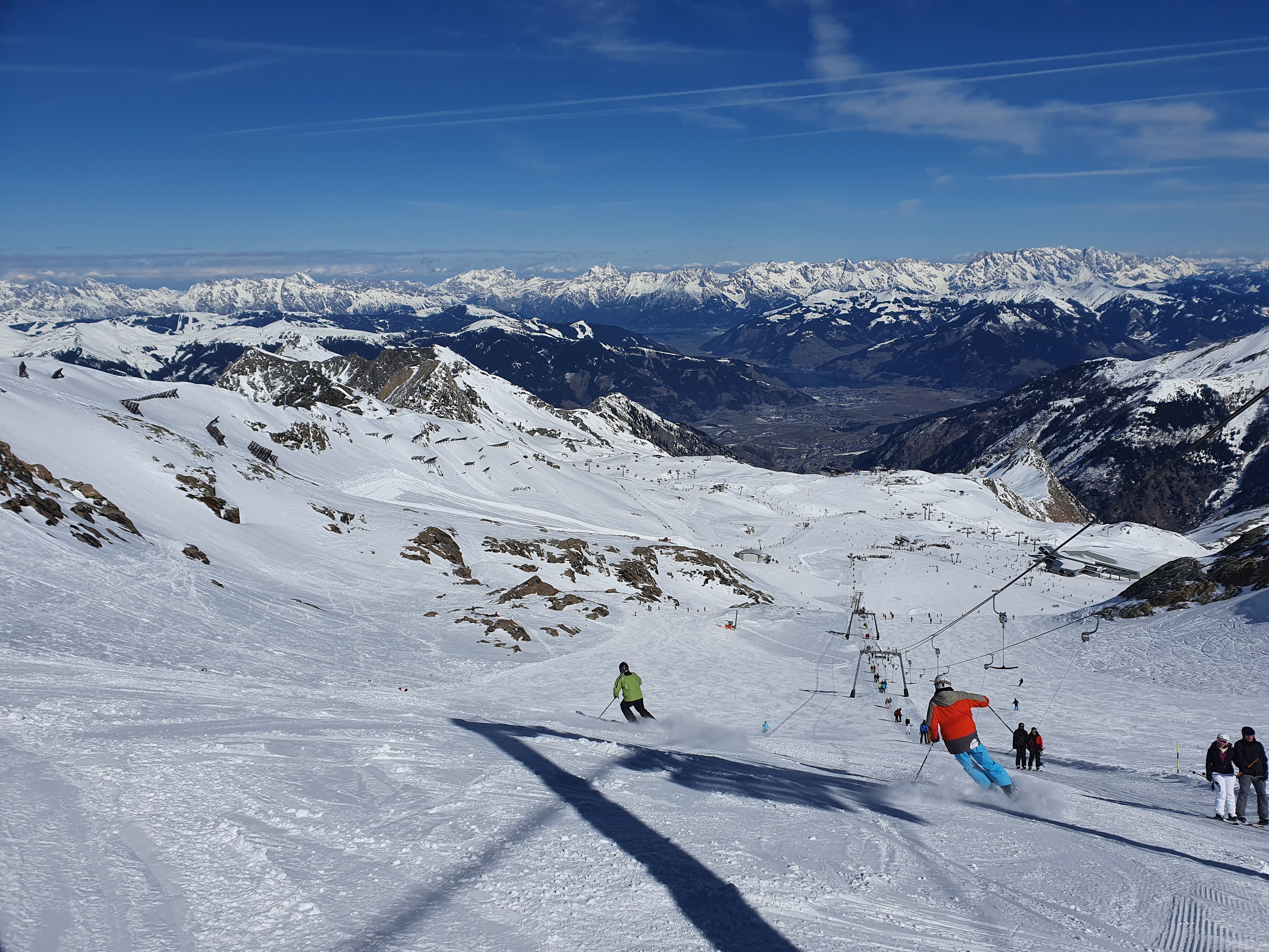Pârtiile au fost surprinzător de bune, având în vedere vremea foarte caldă. Dimineața aveam 2-3 grade, nici măcar nu erau mașinile înghețate. Urcam cât puteam de repede la peste 2000m ca să prindem un pic de răcorică, dar la prânz aveam și 10 grade pe pârtii. Chiar și așa, italienii au ținut toate pârtiile și toate instalațiile deschise. E o minune că am putut schia. Noi ne-am bucurat de fiecare minut și de fiecare peisaj, chiar dacă arăta de aprilie. Unele locuri erau deprimante, cu iarbă în jur, păsărelele ciripeau deja de primăvară, erau lanuri de ghiocei, dar dacă te uitai în sus, era superb.
