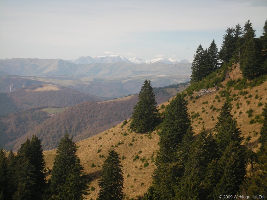 Panoramă din poiana Zăganu spre țancurile de pe versantul vestic: